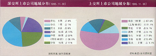 深市每每比较总以沪市为对象,其实论市场的启动,深市先于沪市;论市场的盛衰,深市曾盛于沪市。国务院朱副总理当年曾批评沪市不及深市。然而当沪市后来居上,面向全国时,深市的眼光却依然停留在沪市。这显然有一定的近视,且不说二地市场发展有着不同的历史背景和宏观政策,就说二地市场的现状也各有各的优势。上海之所以在短短数年,大步赶上深市成为全国的证券金融中心,一个重要原因是其眼光不是注视深市,而是注视国际,大量地吸取国际先进股市的发展经验,结合沪市的实际,以大手笔、大气势描绘沪市发展的蓝图。在这方面前任上交所总经理尉文渊确有一定的胆魄和智慧,敢于进取。在深市因8.10事件谨慎踏步时,沪市开创了拓展市场的新局面。沪市也注视深市的变化,但决不是以深市为目标,沪市从发展的一开始,就以高起点为目标。而深市却处处以沪市为攀比对象,起点较低,即使发展也可能会误入“上海化”的歧途。其实深市的关键在市场容量,俗话说:水至浅则无波,池水里是难养大鱼的。1995年7月31日统计资料显示(表1、图1),沪市A、B股品种共计252个,深市为184个,沪市A、B股上市总额为475亿元,深市上市总额为236亿元,沪市的市场容量比深市大一倍。再看深市的上市公司集中于华南、西南和西北地区,而经济发达的华东华北及东北地区的上市公司却较少,也正由此使深市的投资者相对集中于广州、珠江三角洲一带,尽管深市在全国性市场发展上作出努力,仍难以改变以本地、广东、华南地区为深市投资者主导力量的局面。谁都知道80%以上的原始股民来自于上市公司的职工,所以上市公司的局限也必然带来投资者的局限。其三,沪市的股东结构远比深市丰富,既有6亿以上的上海石化,又有1000万股以下的永生股份,从行业看无论是国家支柱产业,还是公用事业,国家的任何一项经济政策的变化均能在沪市上市公司中找到题材。海洋大了就有了各种各样的海产品,就能吸收多类鱼和生物。而深市的股东结构相对呆板,5400万平均流通股比沪市单一。由此可见深市的市场容量是个亟待解决的问题。从这点内容,再返回到深沪比较,深市应跳开沪市、将视角伸向世界,就中国证券市场整体容量看,仍然偏小,仍然难以吸引海外机构投资者入市,只要能容纳大机构、大财团的市场,才能产生活跃的行情,香港、美国以及其他成熟的证券市场之所以能产生大的成交量,其重要的原因之一就是容量。